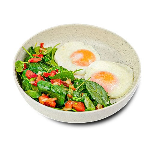 Ouă ochiuri, Salată mix, Salsa roșii.