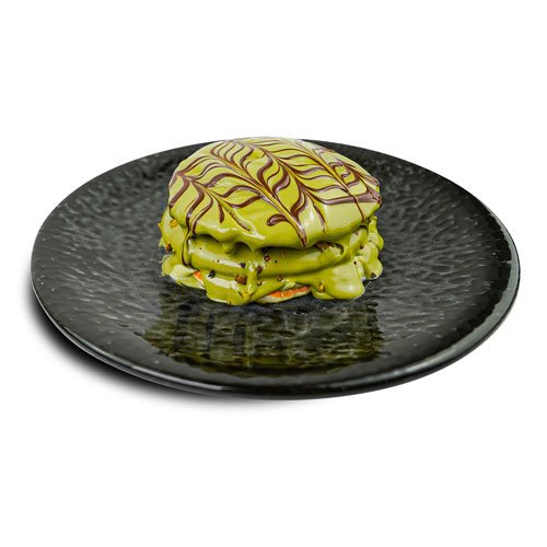 Pancakes, Cremă de fistic, Topping ciocolată neagră.